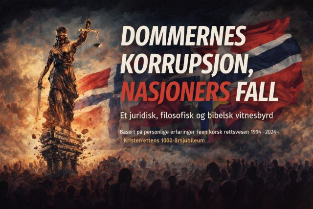 Et juridisk, filosofisk og bibelsk vitnesbyrd, av Jarle Johansen. Basert på personlige erfaringer med norsk rettsvesen 1994–2024+ | Kristenrettens 1000-årsjubileum. Jeg gir her oppskriften på hvordan de som utsettes for korrupte dommere bør handle.